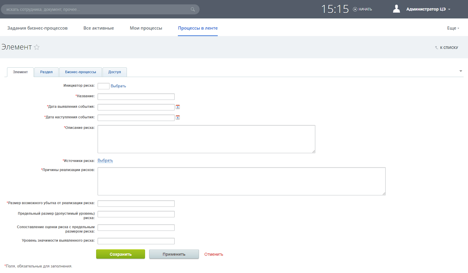 Нам необходимо было создать удобный и понятный бизнес-процесс управления рисками, в котором: