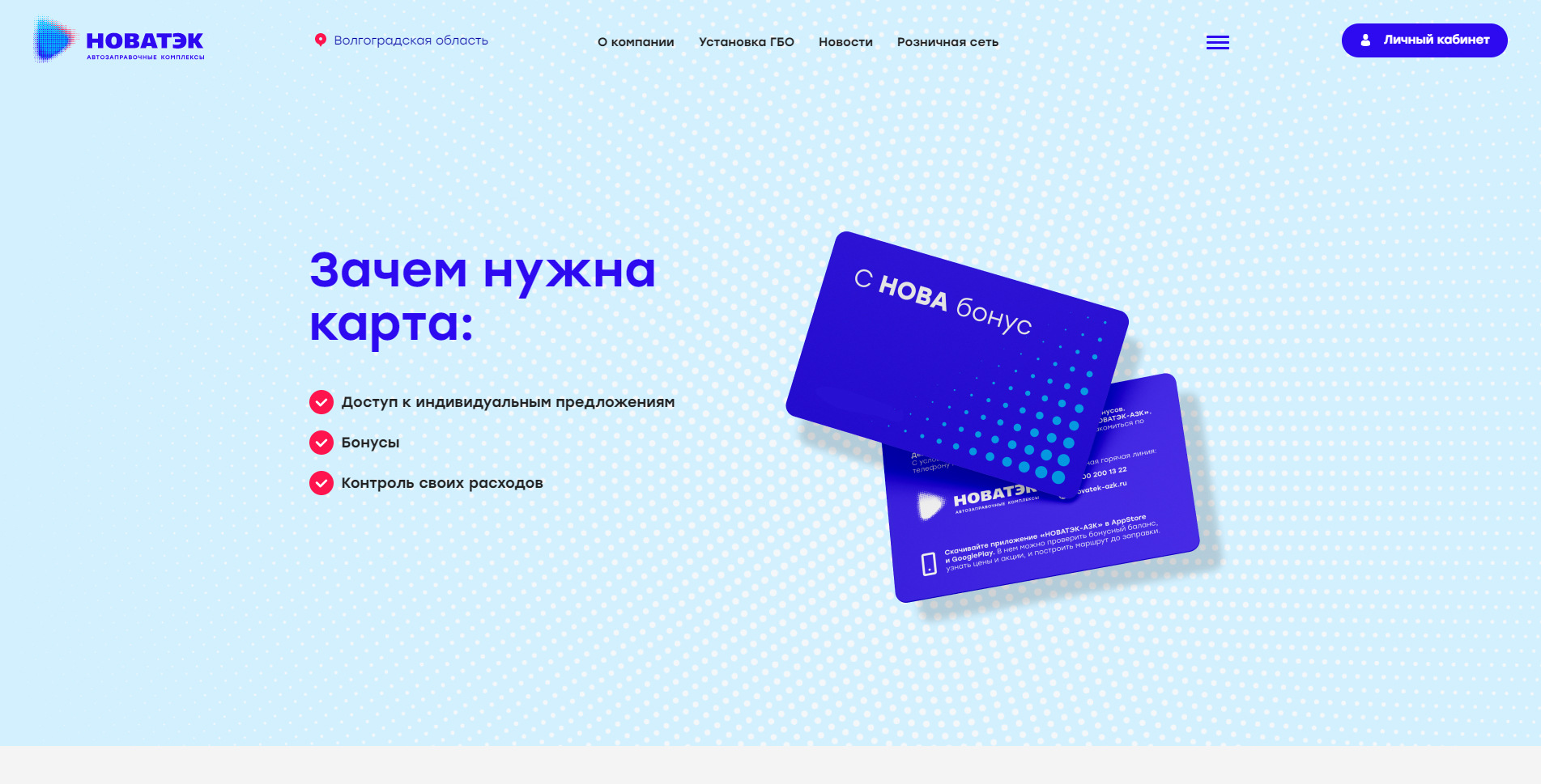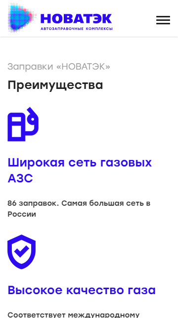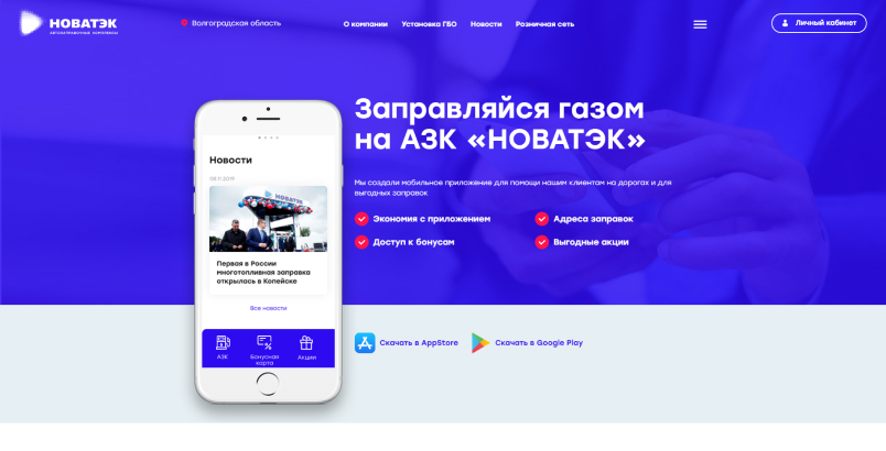 Новый сайт позволяет получить всю необходимую информацию физическим и юридическим лицам по бонусным картам через личный кабинет, новым пользователям узнать про карты лояльности, найти места заправок по городам, а также просчитать выгоду перехода с бензина на газ, за счет калькулятора выгоды и есть возможность стать партнером компании.