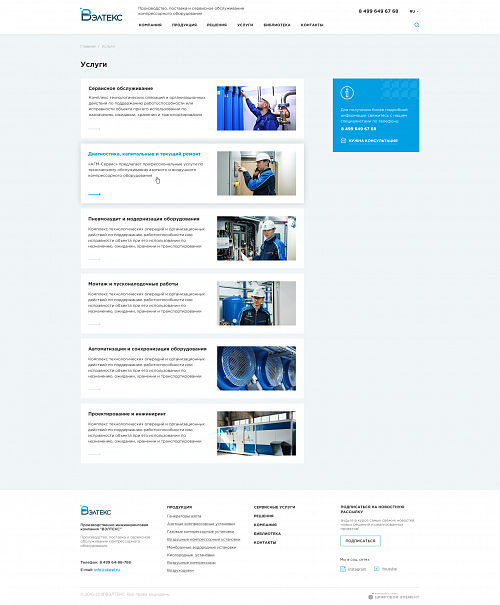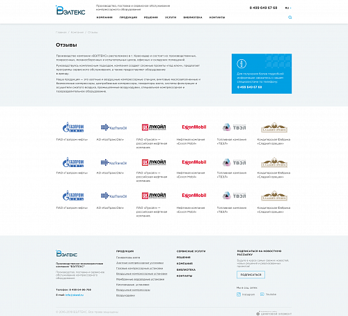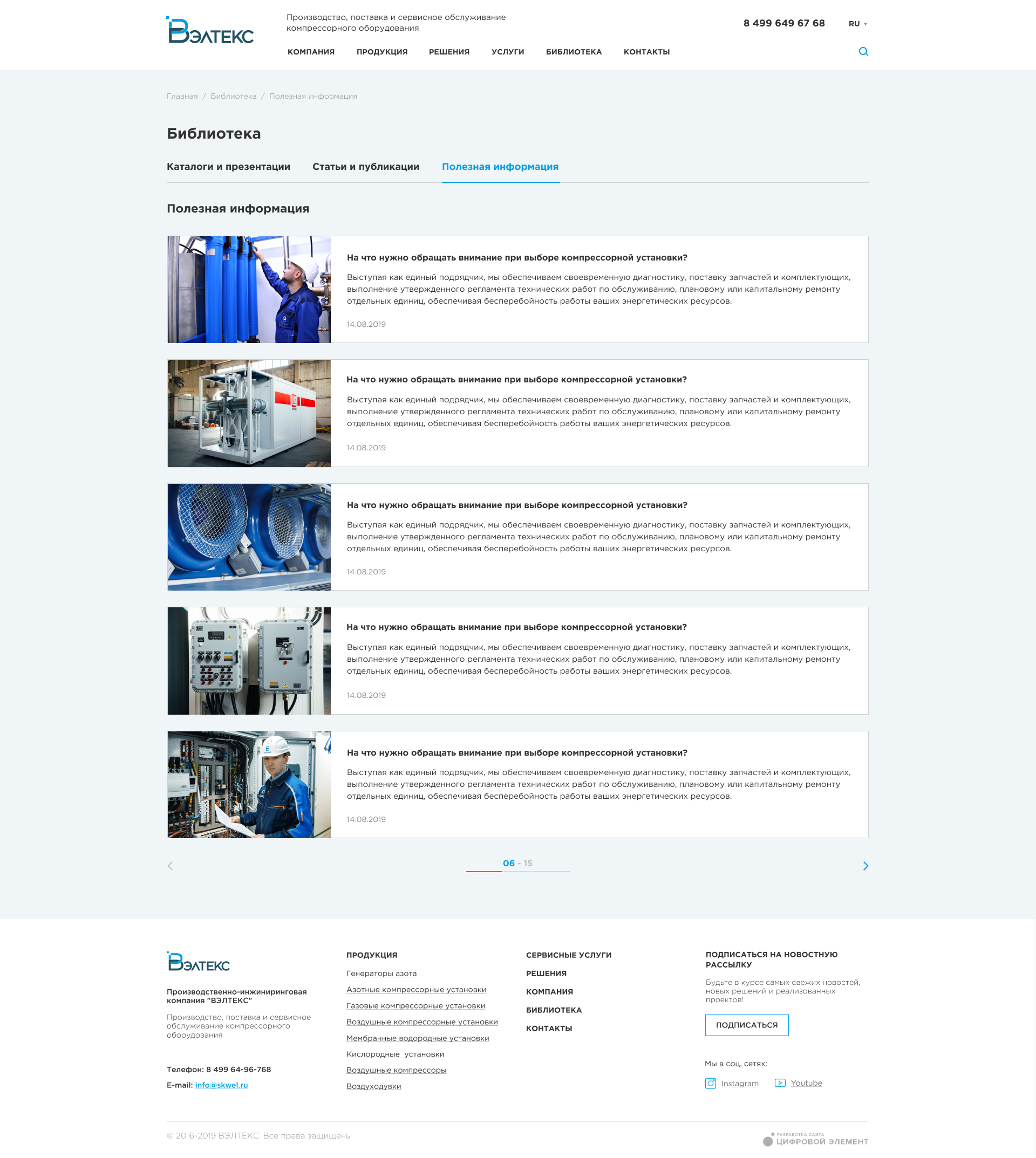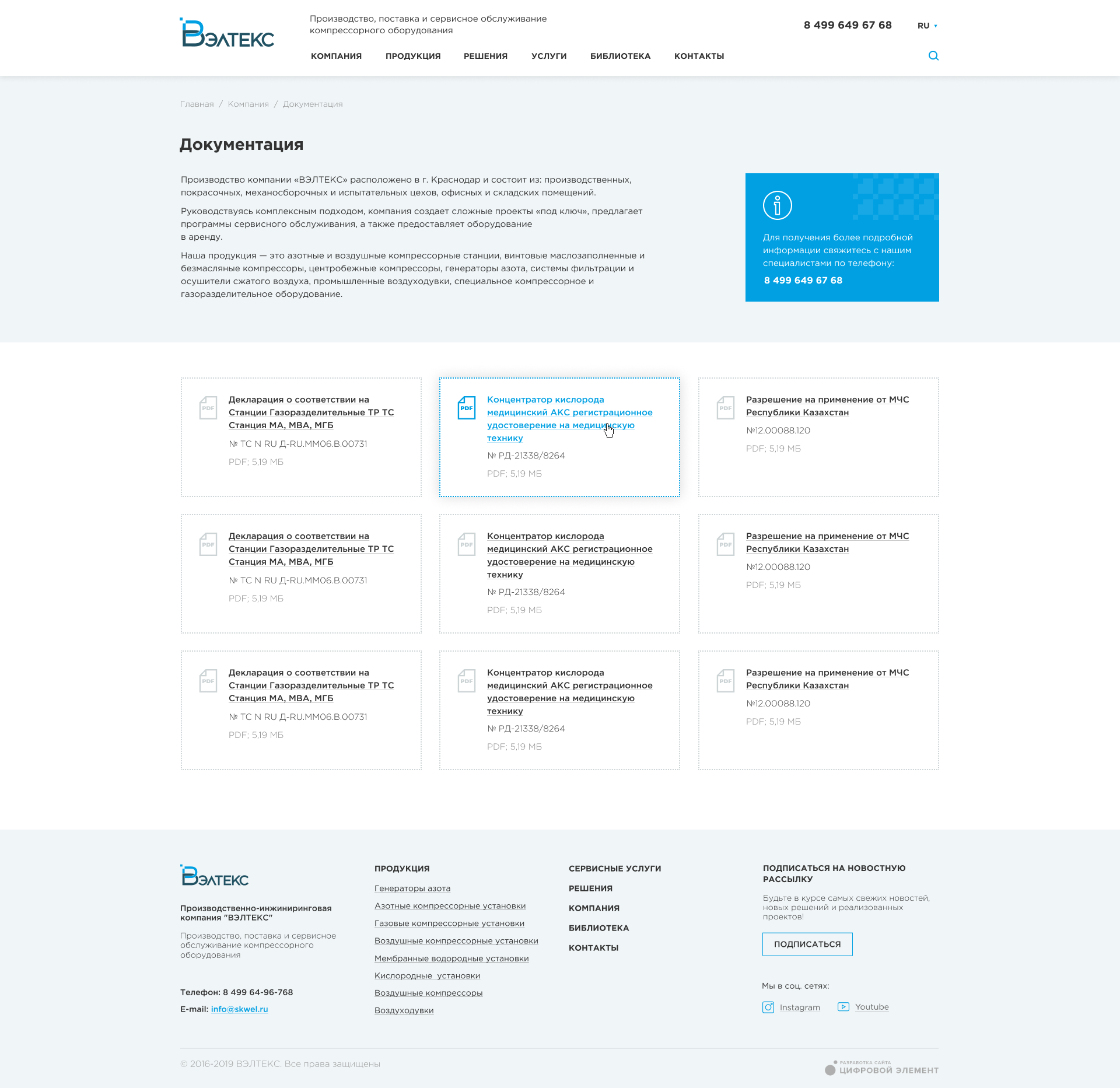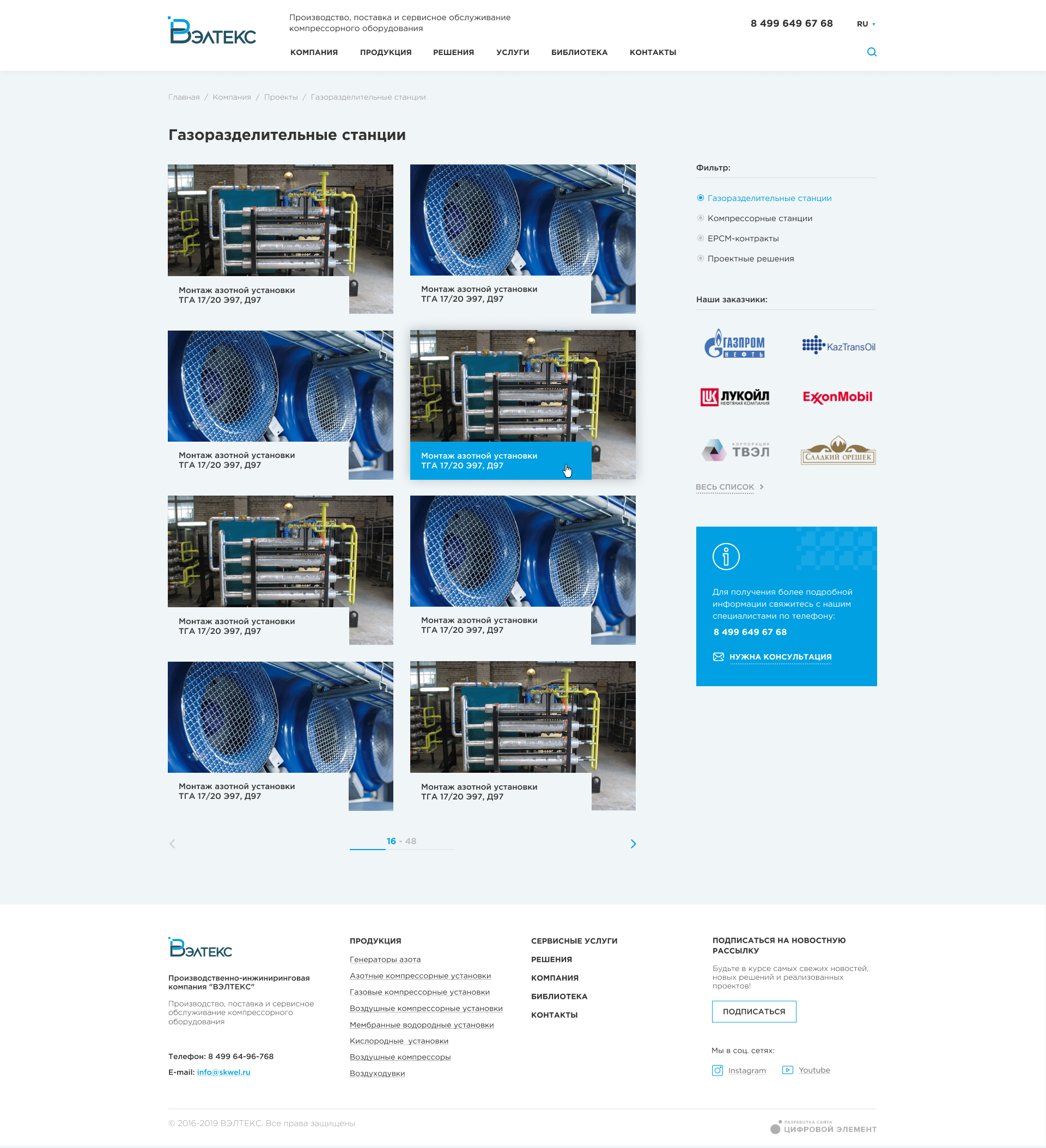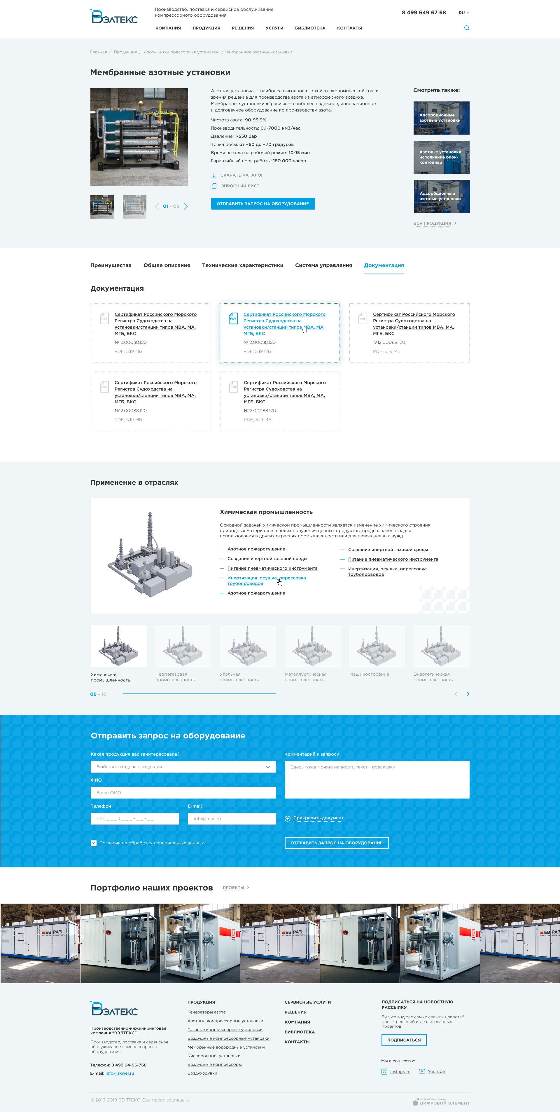 «ВЭЛТЕКС» — динамично-развивающаяся компания, специализирующаяся на производстве компрессорного оборудования премиум-сегмента и предоставлении услуг в комплексе от разработки и производства азотных и воздушных станций до ввода оборудования в эксплуатацию и его послепродажного обслуживания.